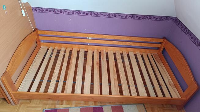 Łóżko bukowe mocne wysuwane stan bardzo dobry. Powierzchnia spania 90x200 lub 180x200 Dwie szuflady na ...